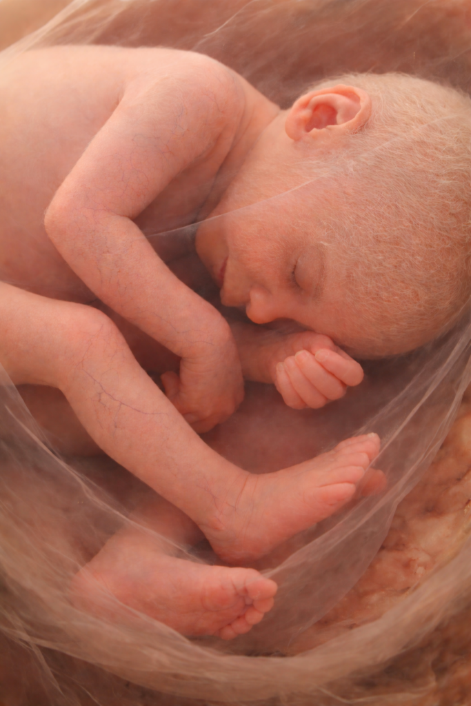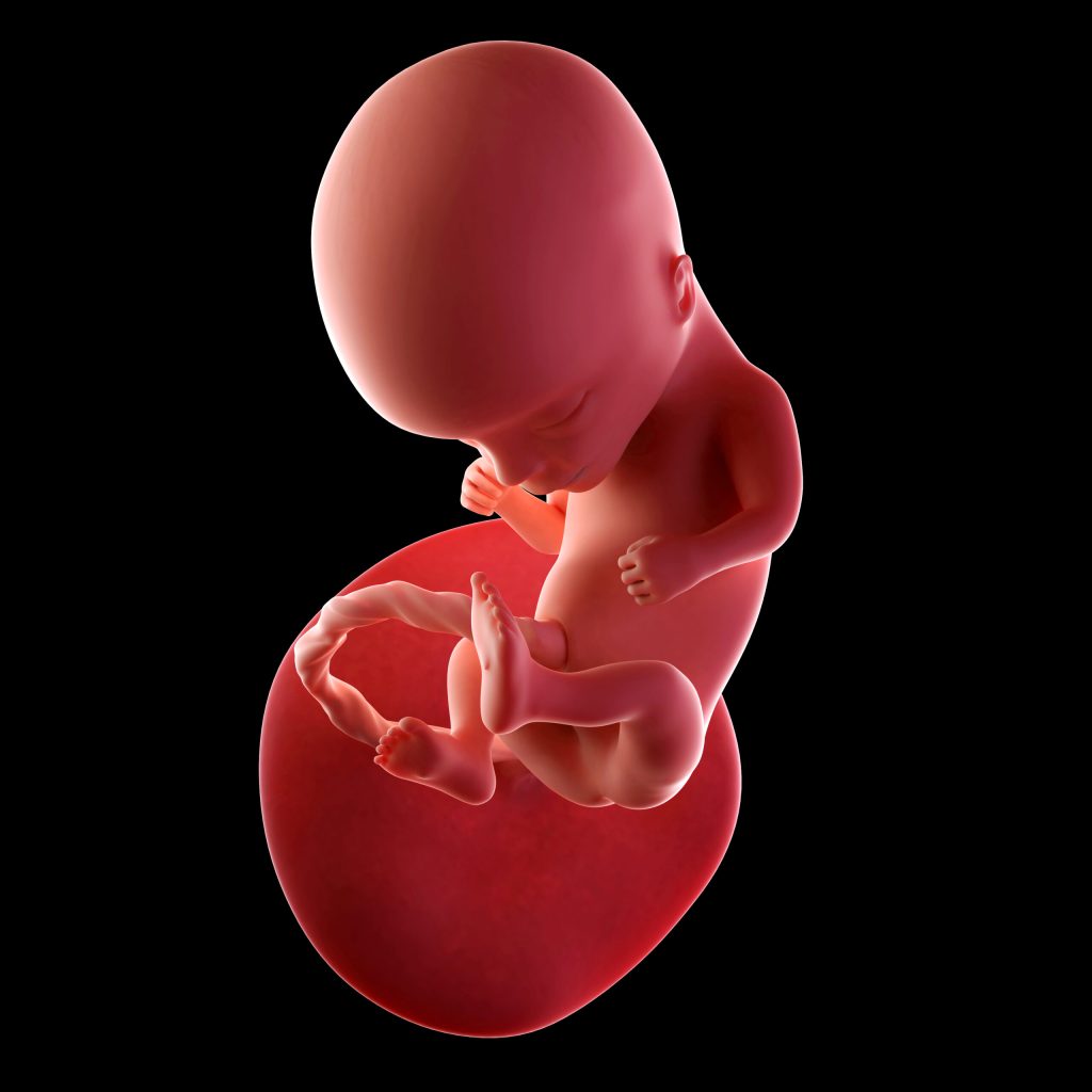 Rond deze tijd, aan het begin van de 4e maand, wordt de huid van je baby bedekt met een laagje donshaartjes. Deze zachte haartjes worden lanugo genoemd en verdwijnen weer vrijwel volledig tegen de uitgerekende datum. De huid is doorzichtig en alle adertjes zijn zichtbaar. De spieren in het gezicht ontwikkelen steeds verder en je baby kan nu allerlei gezichtsuitdrukkingen aannemen. Ook beginnen de reflexen zich te ontwikkelen. Kleine jongetjes beginnen al testosteron aan te maken.