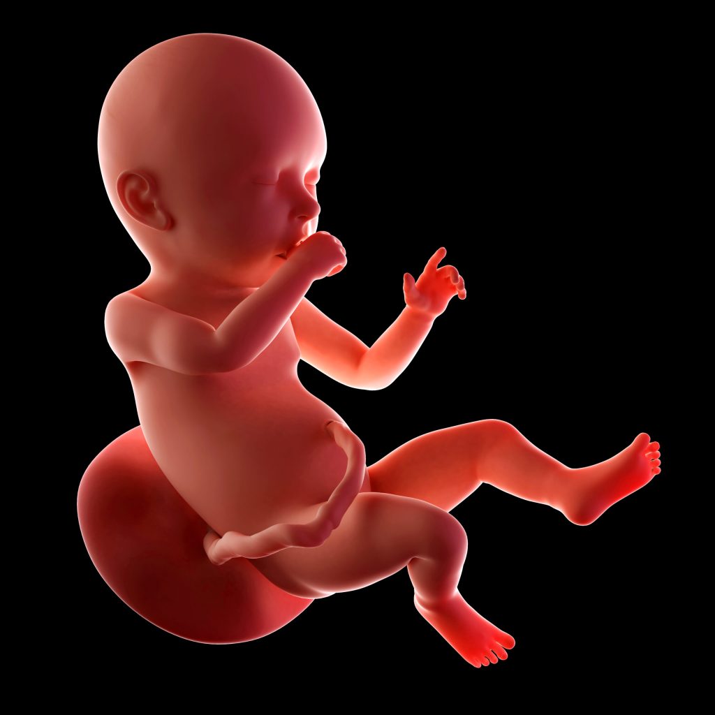 In je buik blijft je kleintje oefenen met ademhalingsbewegingen en worden belangrijke reflexen, zoals de grijp- en zuigreflex, regelmatig uitgetest. Bij de geboorte beschikt je baby over zo’n 70 reflexen. Een aantal hiervan zullen gecontroleerd worden na de geboorte. Je baby zwemt in de vruchtzak, die gevuld is met gemiddeld een liter vruchtwater (al kan dit per zwangerschap erg verschillen). Het vruchtwater wordt iedere paar uur ververst. Zolang de vliezen niet gebroken zijn, is je kindje in de vruchtzak veelal beschermd tegen infecties van buitenaf.