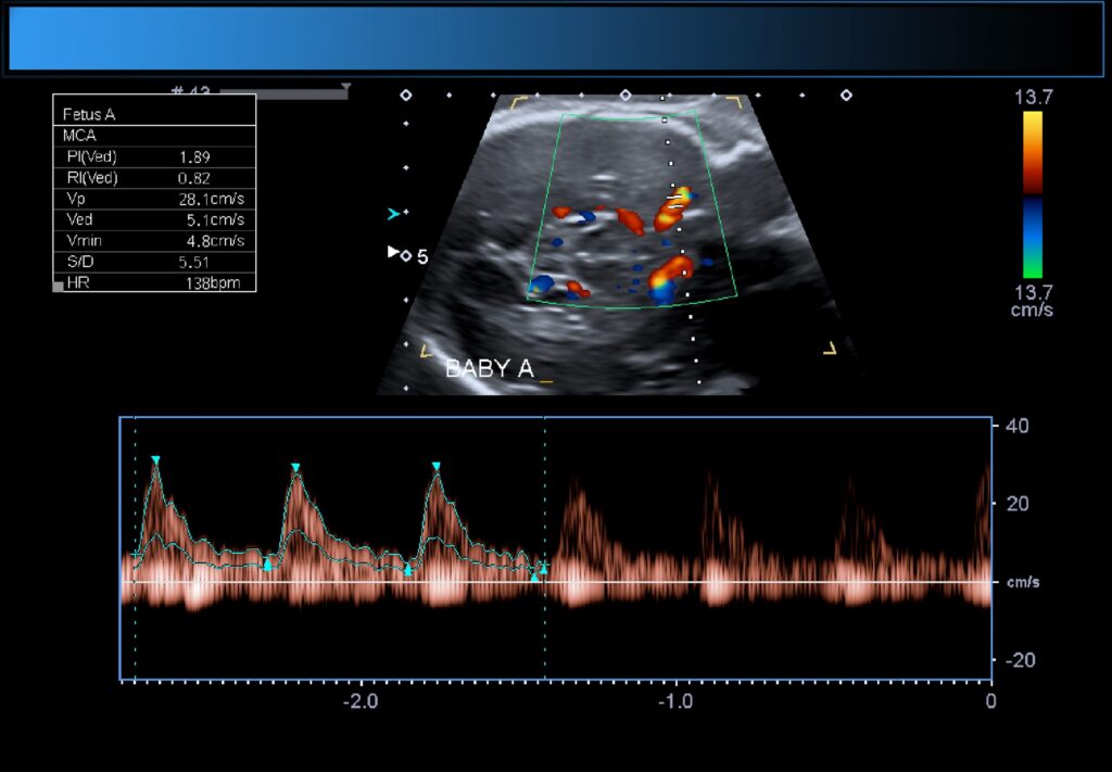 Bij een kleine groep kindjes is het nodig ook de doorbloeding van verschillende bloedvaten te meten. We noemen dit een doppleronderzoek en ook deze metingen gebeuren met behulp van een echo. Het meten van de doppler wordt met name gedaan bij kleine kindjes. Door de doorbloeding van de verschillende vaten te meten, krijgt de gynaecoloog meer duidelijkheid over de conditie van de baby op dat moment.